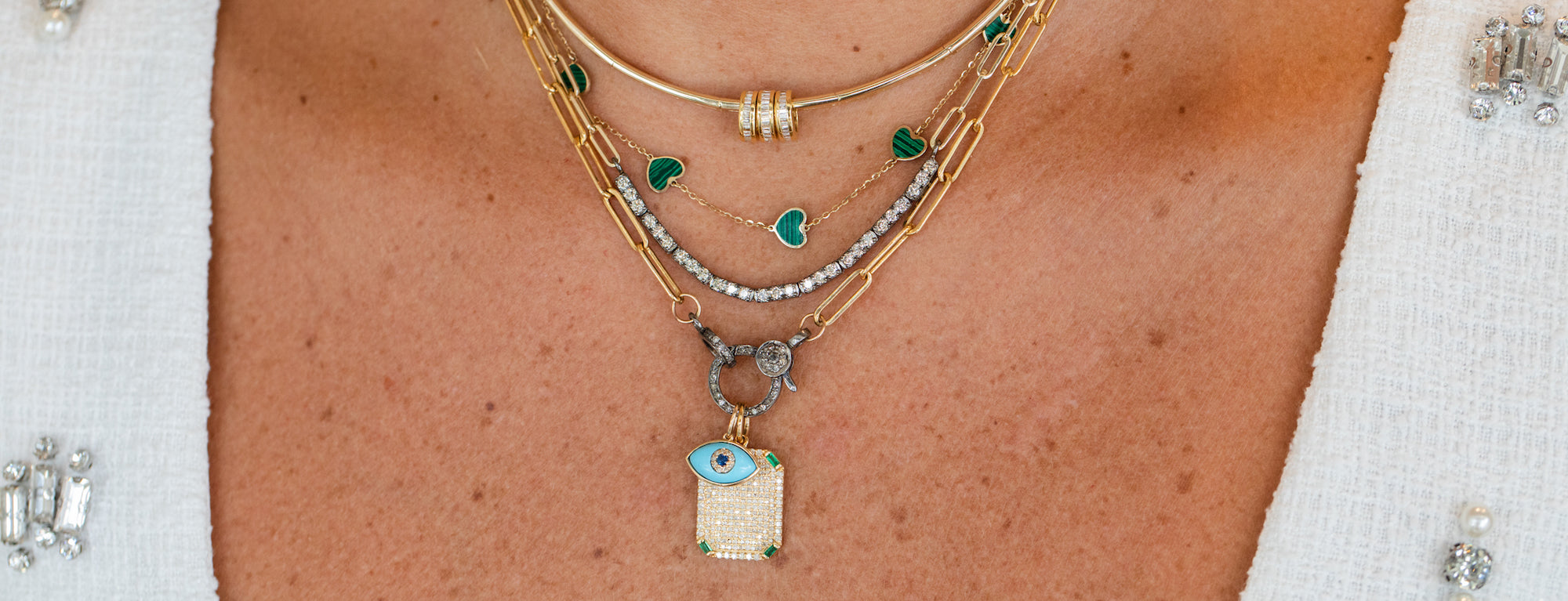 14K Gold Malachite Heart Station Necklace 14K Gold Malachite Heart Station Necklace