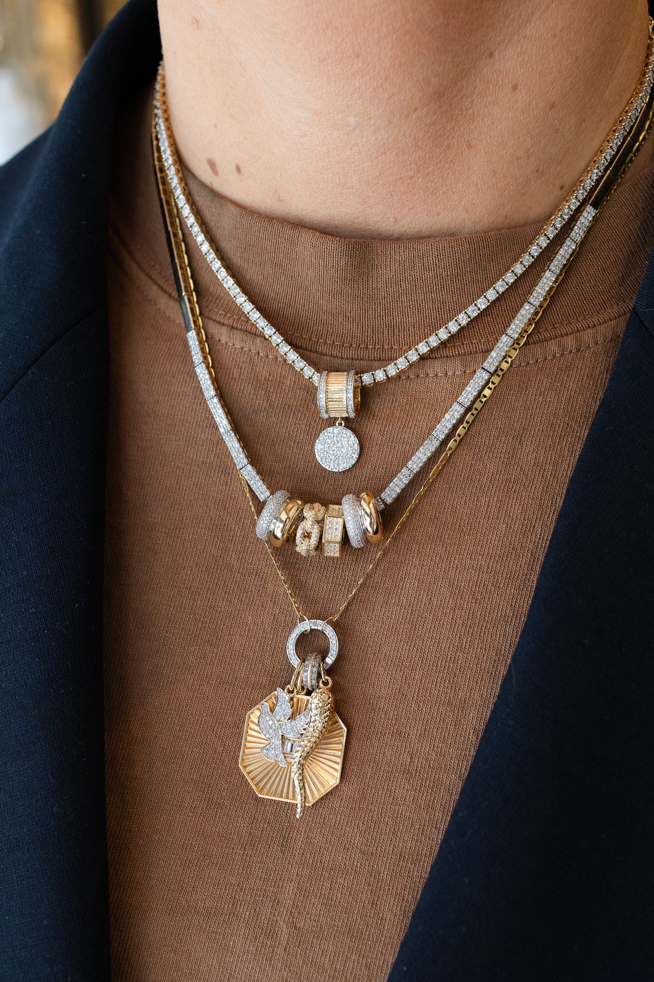 This thick spacer with a diamond disk charm drop is simply stunning.