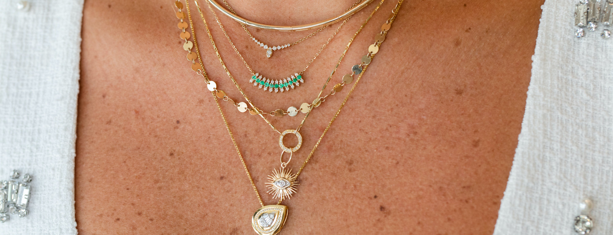 We have simple, classic dainty jewelry designs as well as unique dainty pieces with a bolder story to tell! You’ll find some of our favorite symbols while browsing this page, like evil eyes, crosses, hamsas, stars and more! It’s all about creating a dainty look that is meaningful to you. We love juxtaposing symbols, like wearing an evil eye charm with a sideways cross necklace. We always say more is more; so don’t be afraid to layer!