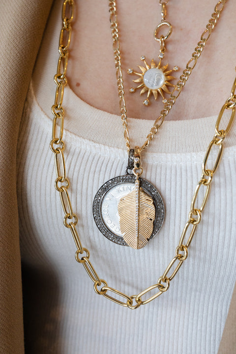 Feathers are a symbol of an angelic presence ... feathers appear when angels are near. Add this diamond feather charm to your neckmess for a spiritual meaning.