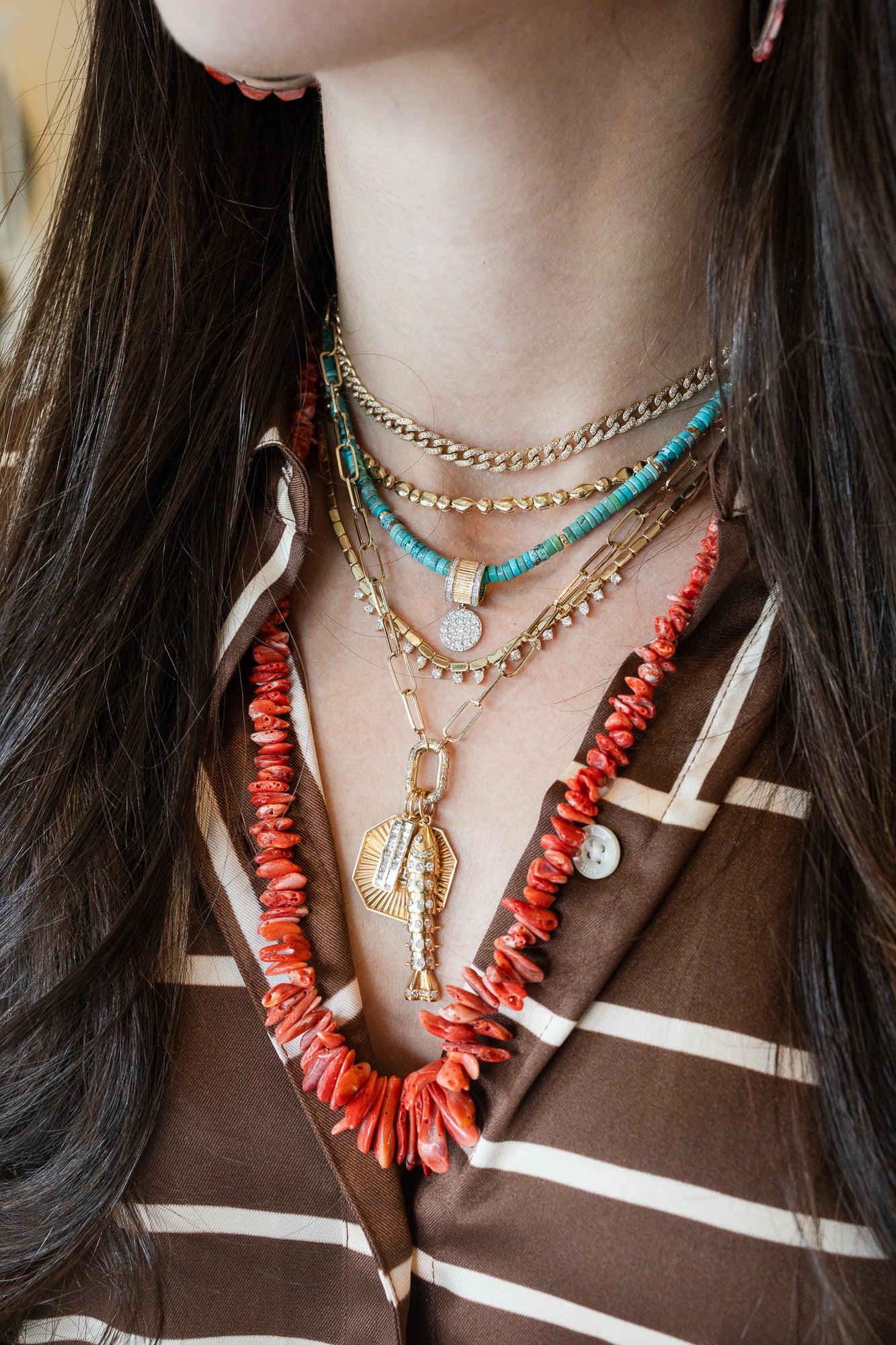 14K Gold Mix Shape Diamond Segmented Bar Necklace