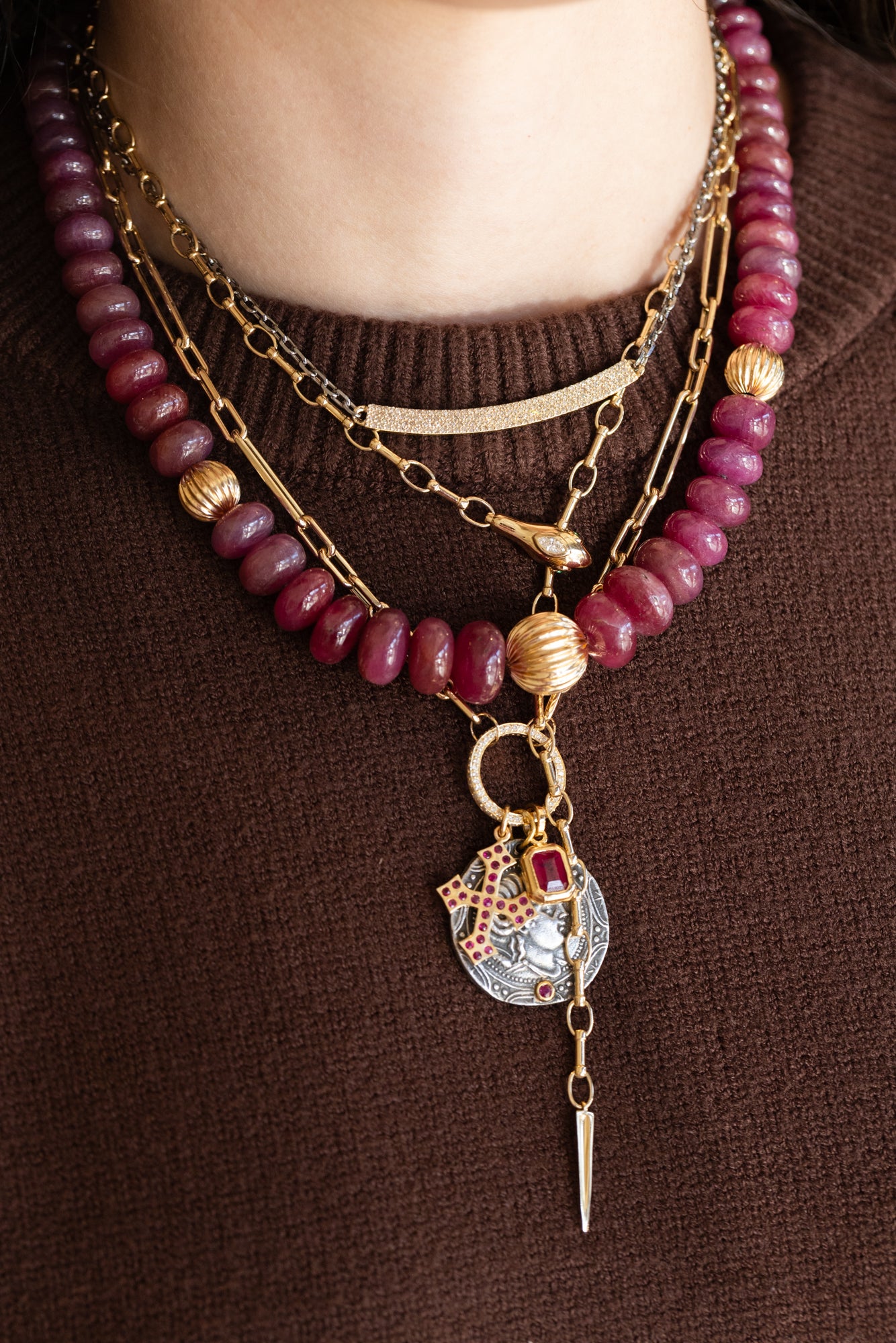 A chunkier gold chain mixed with our 17mm best-selling lock necklace.