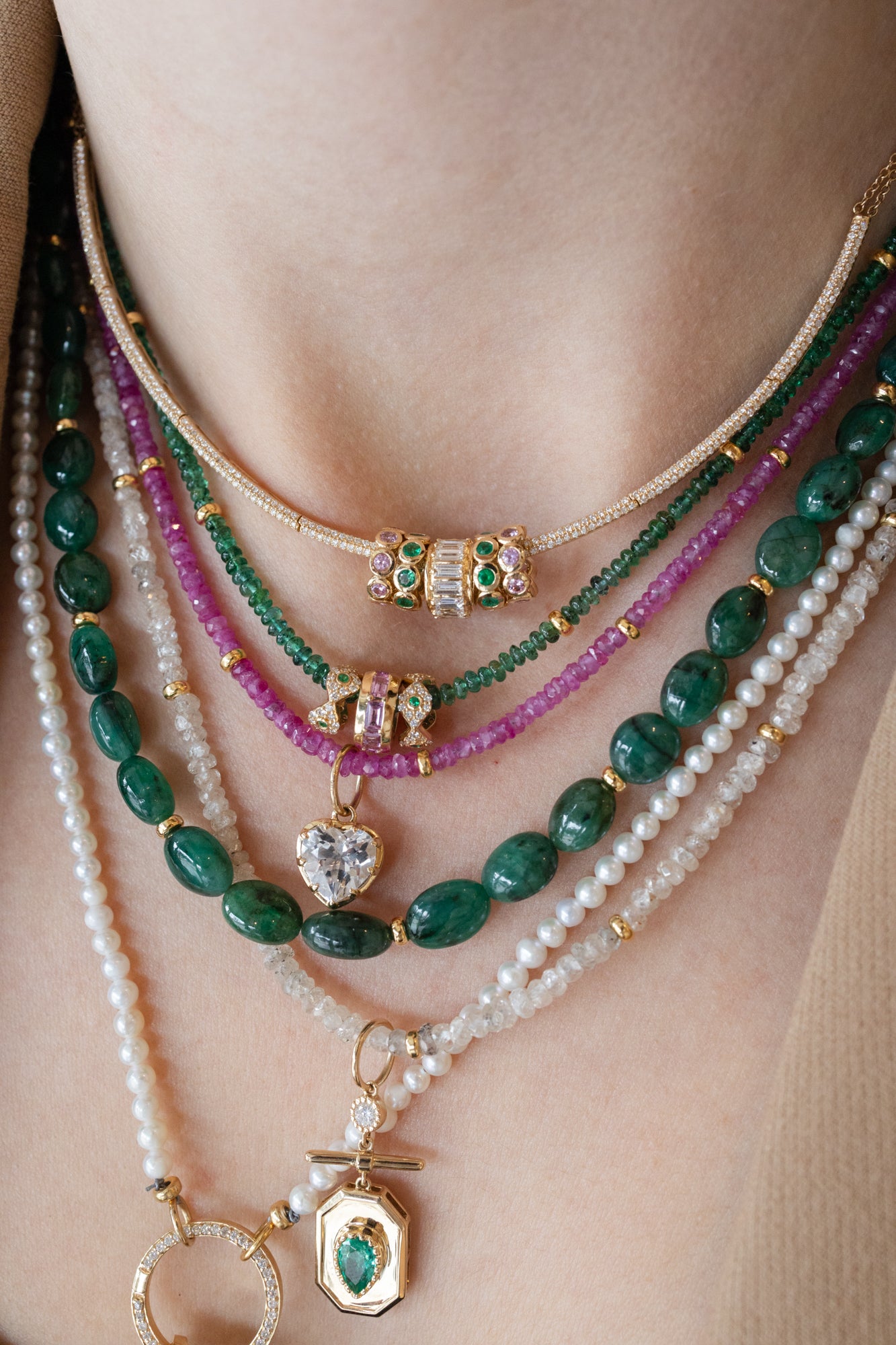 14K Gold Mini Diamond Spacer 2mm Tsavorite Necklace 14K Gold Mini Diamond Spacer 2mm Tsavorite Necklace