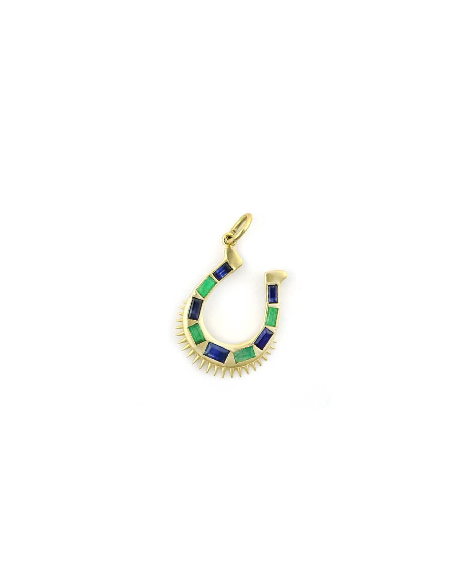 A vintage-inspired emerald and sapphire horseshoe charm - we are obsessed!