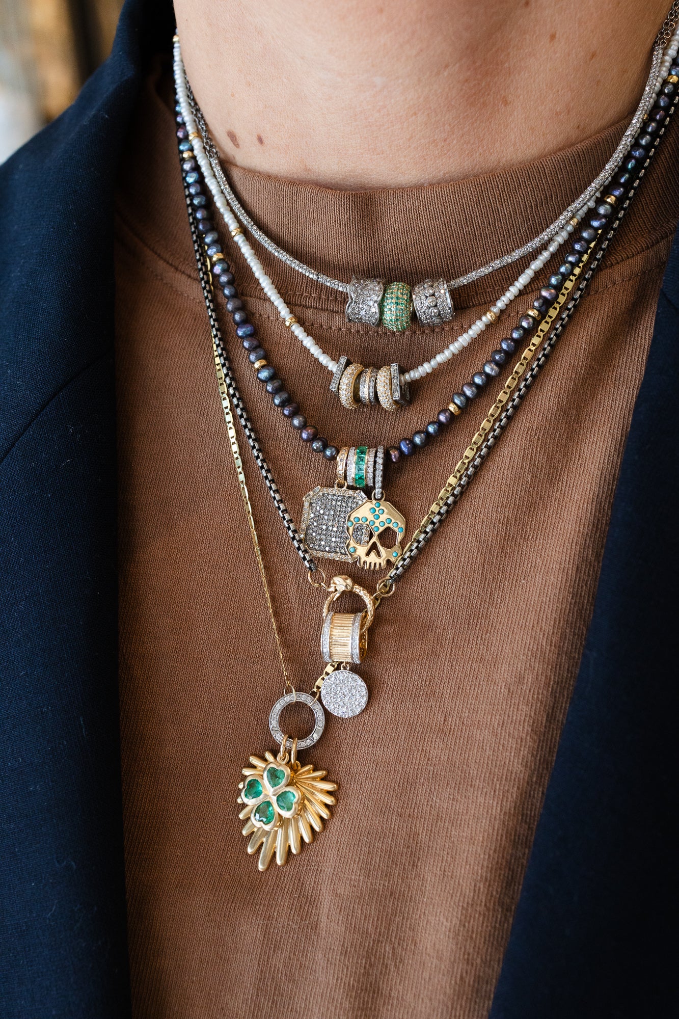 Add some sparkly silver drama to your neckmess with this wavy diamond spacer!