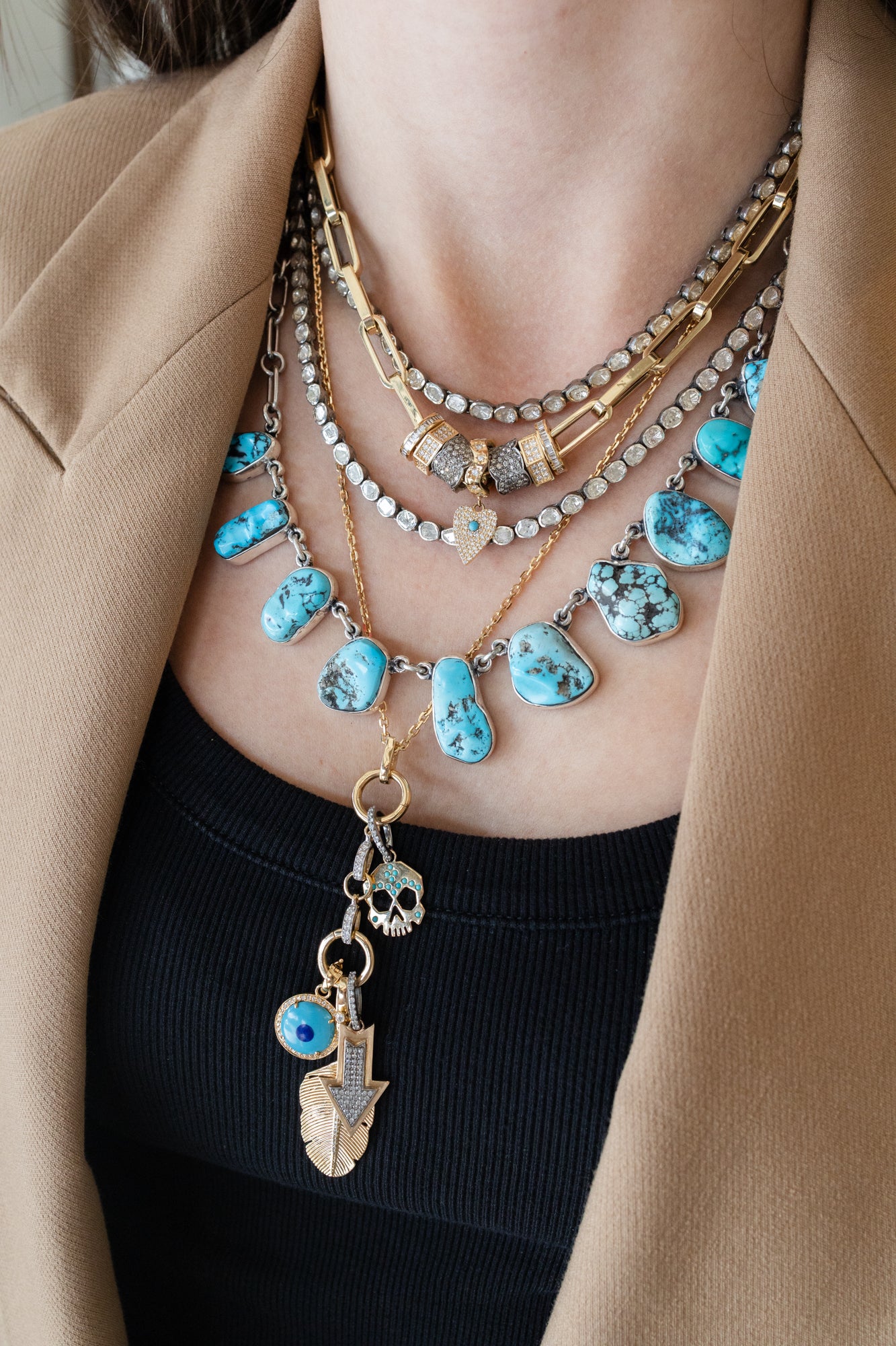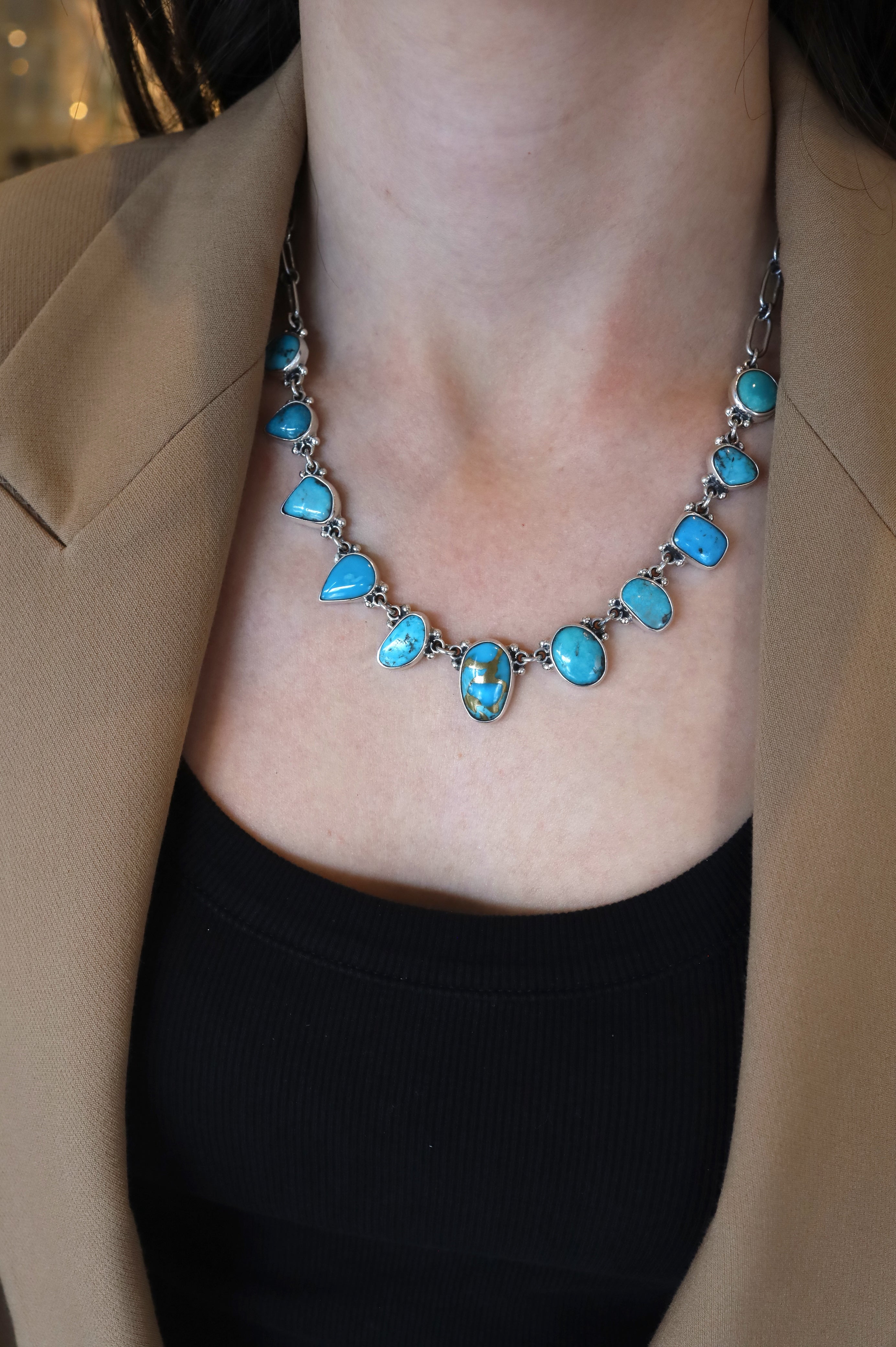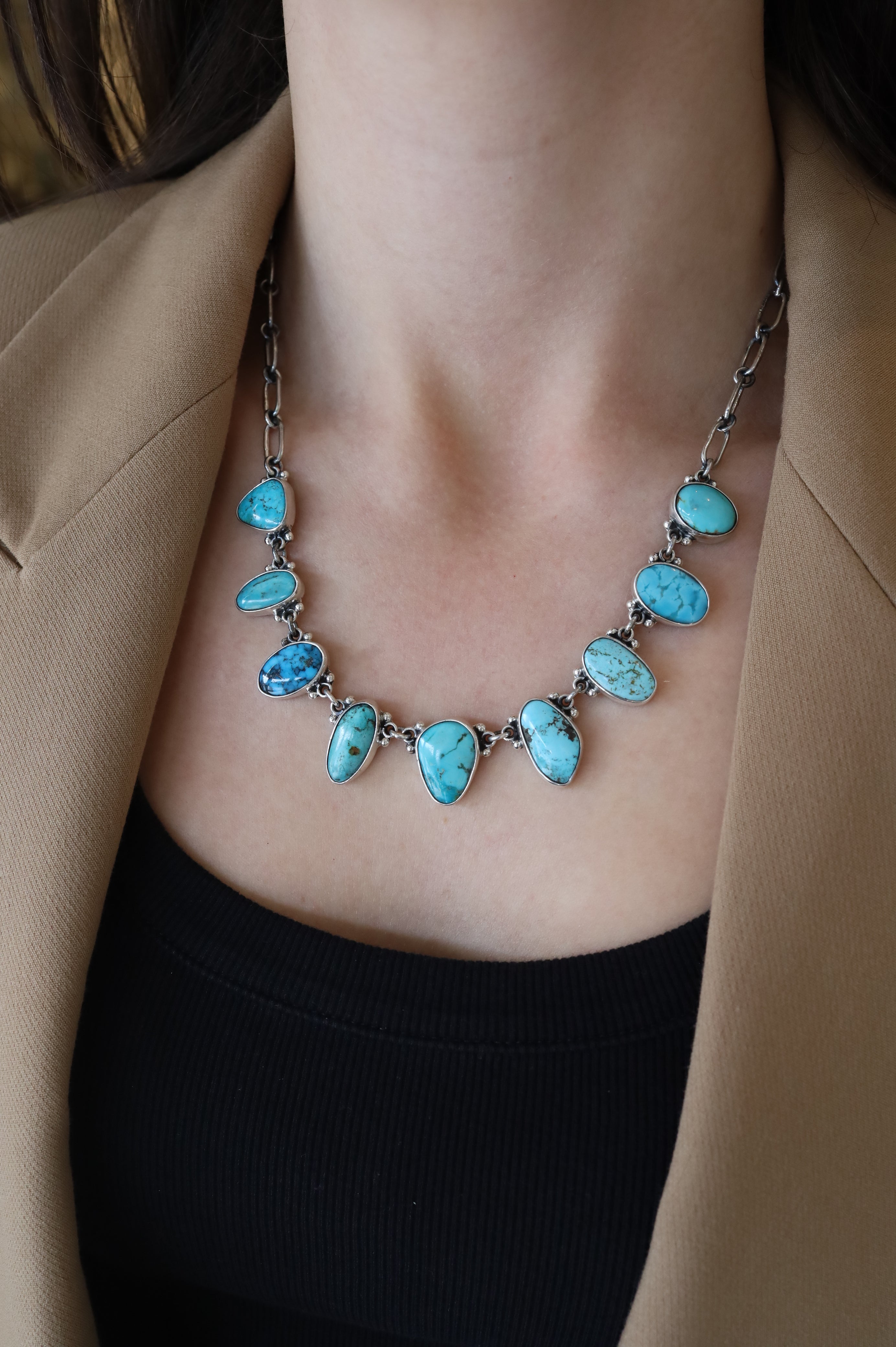 Our favorite turquoise designer makes beautiful one-of-a-kind slab turquoise necklaces - we love adding it to our #neckmess during Spring/Summer and Rodeo season! They are true works of art.
