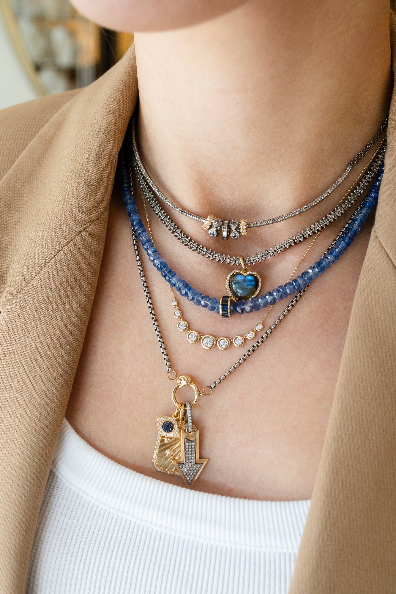 - sterling silver, diamonds, blue sapphires